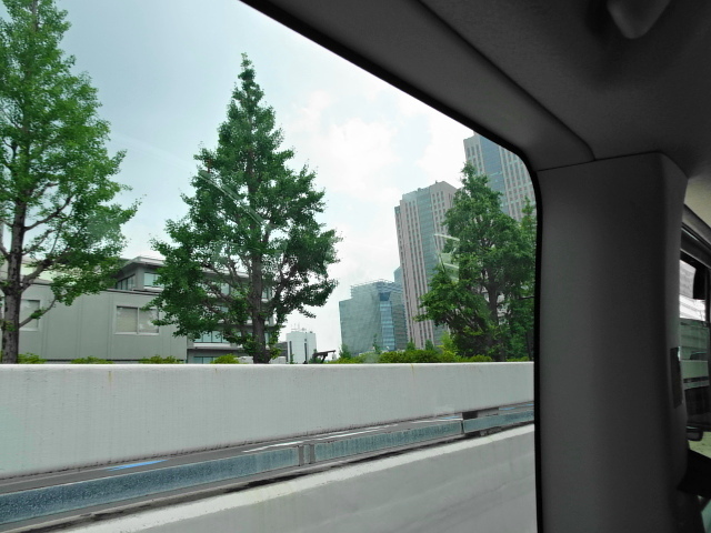 首都高に入って霞が関料金所で出る。国会道路・都道405などを走ってJR新橋駅前のビルにある地下駐車場に停める。